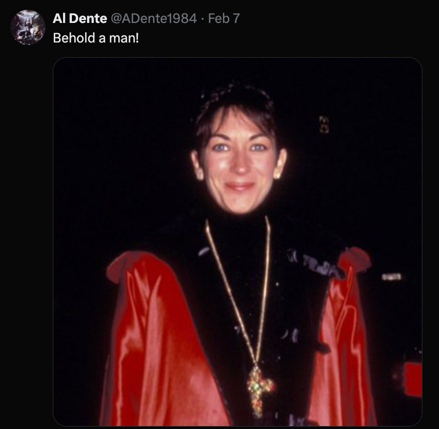 You could hear the desperation in the endless barrage of tweets, which, alongside abusing me, my looks and my character, were all shouting the same message, like they’d learnt it from a playbook: women do bad things too! In fact maybe women are even WORSE!! They sent photo after photo of Ghislaine Maxwell, as if this were the ultimate gotcha, as well as multiple references to other female criminals: primarily Hindley, Letby, and female teachers who had abused their male pupils. But mostly Ghislaine. You could almost hear the snot coming down their noses as they excitedly copy pasted her image into my replies, mouth-breathing away in their mum’s basements in their crusty underpants.